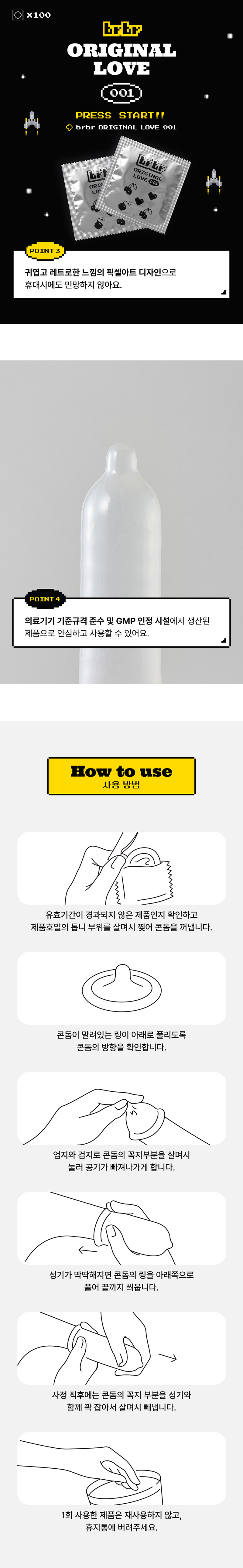 • 용품 사용시 꼭 콘돔을 사용하시길 바랍니다. 위생과 청결뿐아니라 제품의 수명에도 도움이 됩니다.