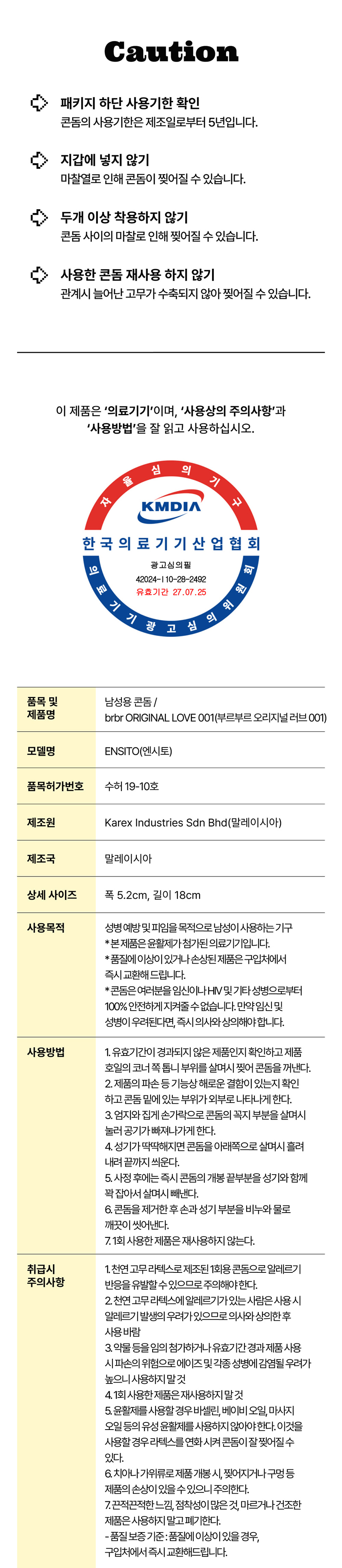 [일반형] 부르부르 오리지널 러브 001 콘돔 100개입(BrbrOriginal Love 001 Condom 100pcs) - 바른생각(9556564095774) (BSG)