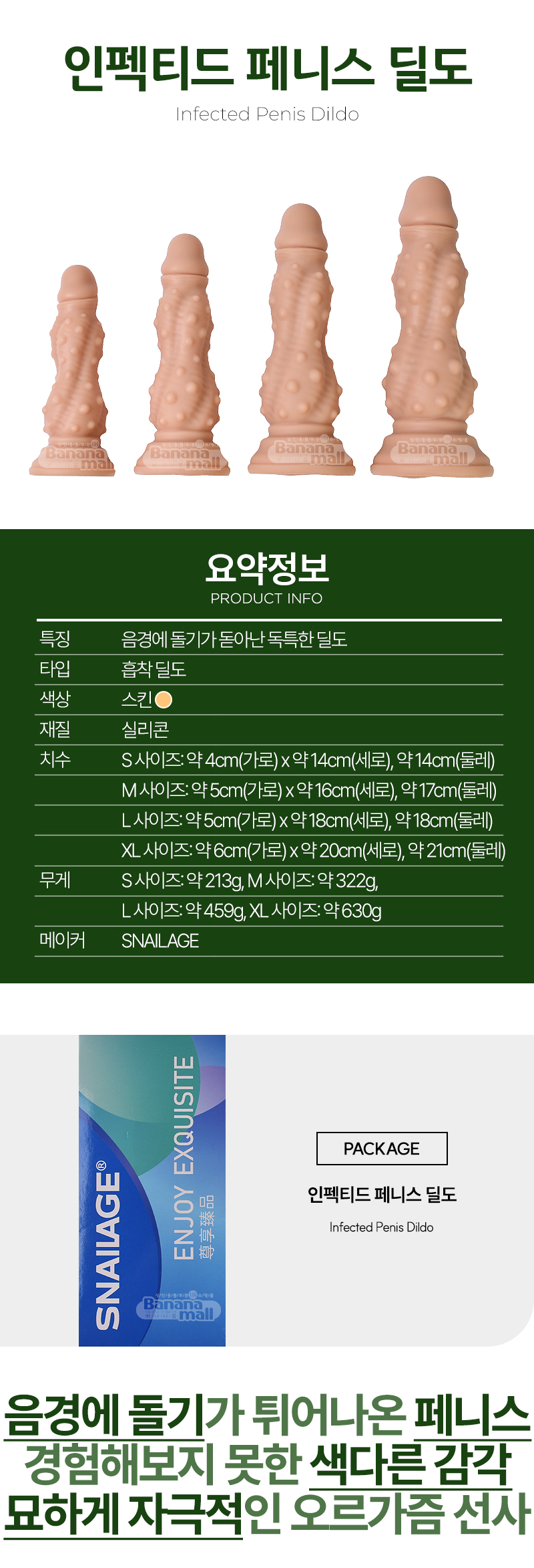[흡착 딜도] 인펙티드 페니스 딜도(Infected Penis Dildo) - 스네일(SNG-D226) (SNA)