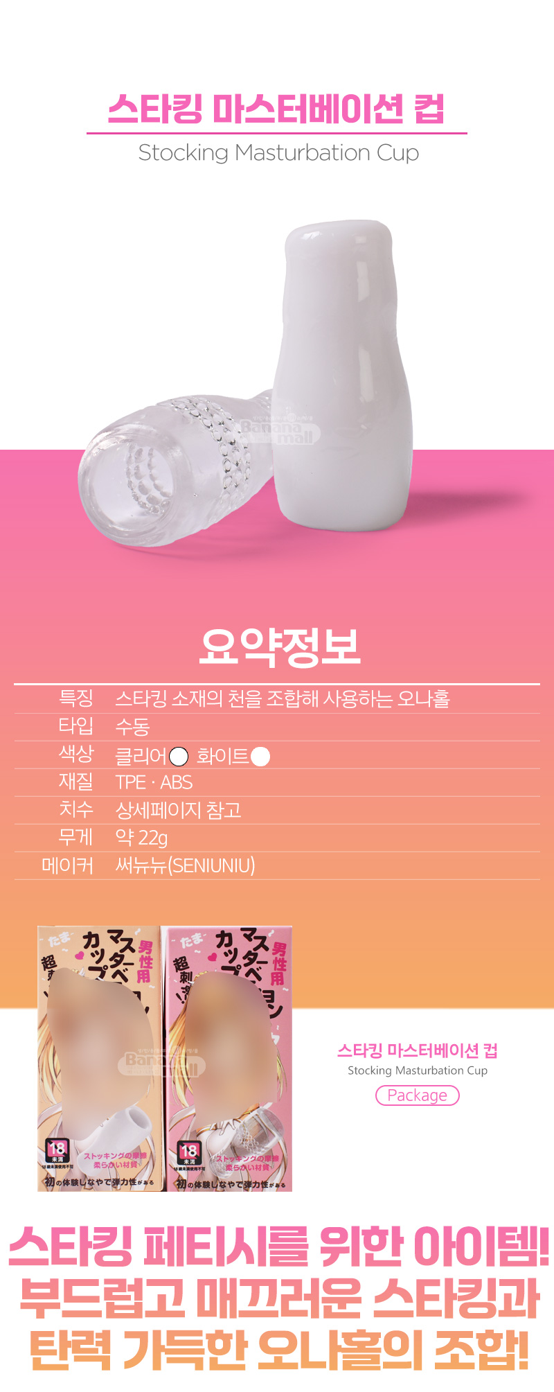 아담한 사이즈에 탄력 가득한 오나홀과 매끄러운 실크 재질의 스타킹 조합으로