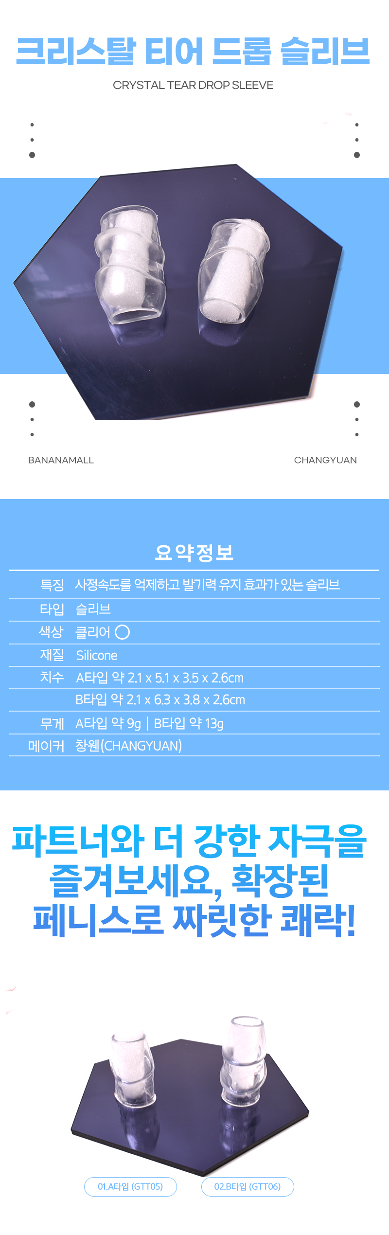 [특수콘돔] 크리스탈 티어 드롭 슬리브 (Crystal Tear Drop Sleeve) - 창웬(GTT05) (CHY)