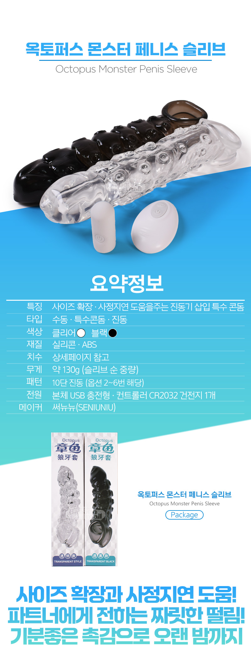 [진동+특수콘돔] 옥토퍼스 몬스터 페니스 슬리브(Octopus Monster Penis Sleeve) - 써뉴뉴(6978203840676) (SNN)