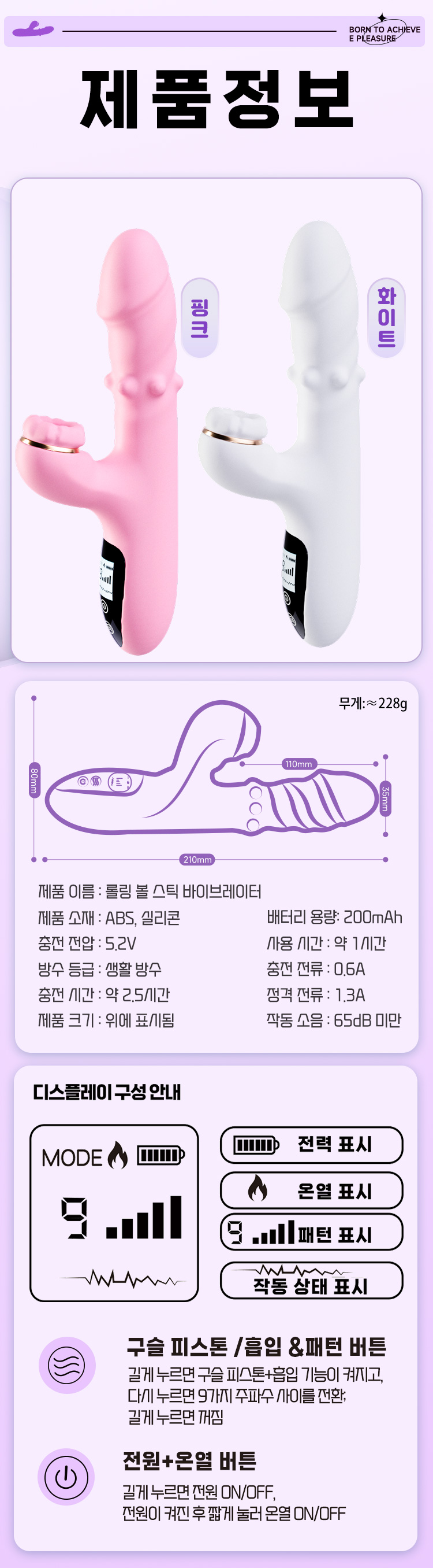 [9단피스톤+흡입+온열] 롤링 볼 스틱 바이브레이터(Rolling Ball Stick Vibrator) - 지우아이(6942257948664) (JAI)