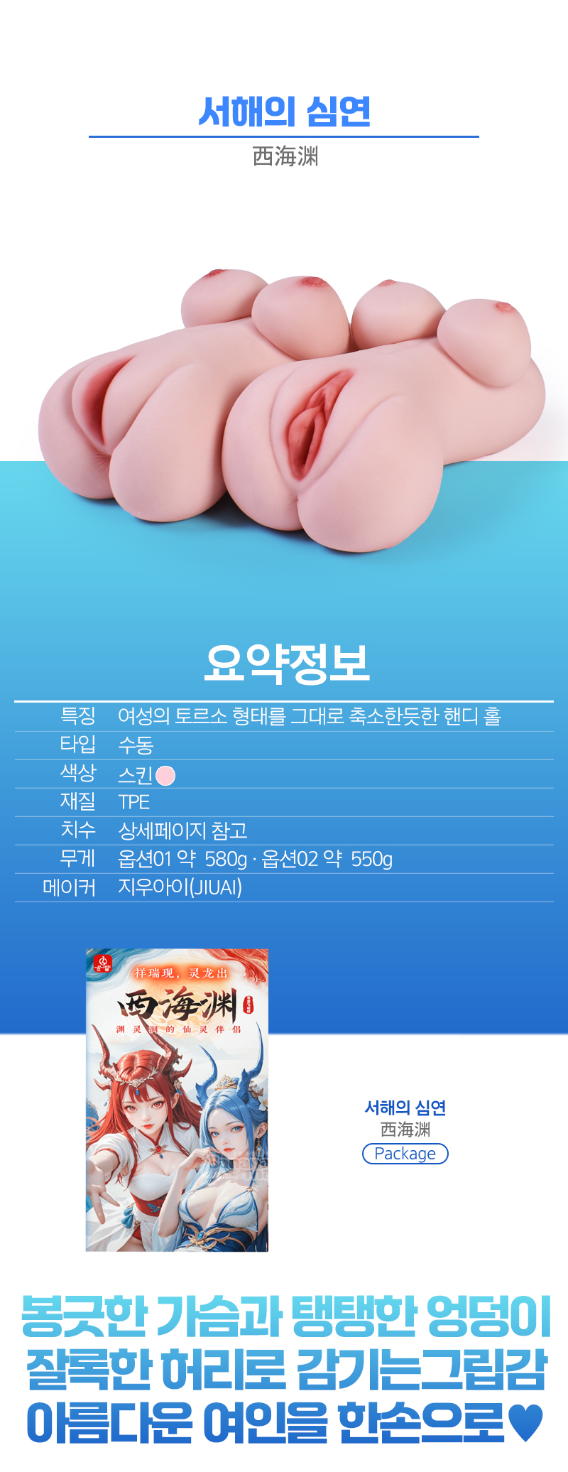 탱탱한 가슴부터 엉덩이까지 실제 여인의 아름다운 볼륨감을 그대로 축소해 한 손으로 즐기는 황홀한 경험!