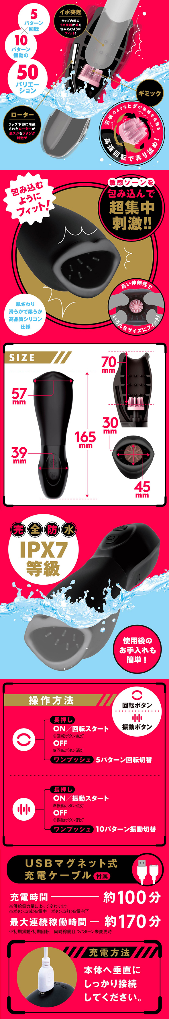 • 방향을 바꾸면 귀두의 미묘한 쾌감도 즐길 수 있습니다. [IPX7] 등급의 방수 사양이므로 사용 후 세척도 간편합니다.
