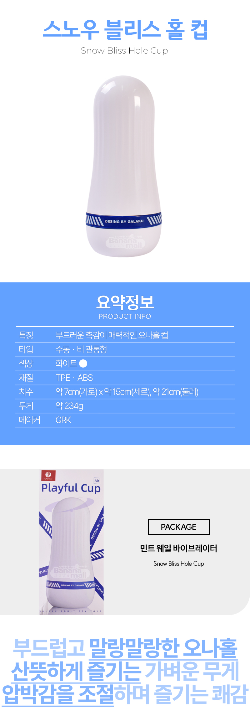 [소프트 오나홀] 스노우 블리스 홀 컵(Snow Bliss Hole Cup) - 가라쿠(GK24160-BL/6975488695885) (GRK)