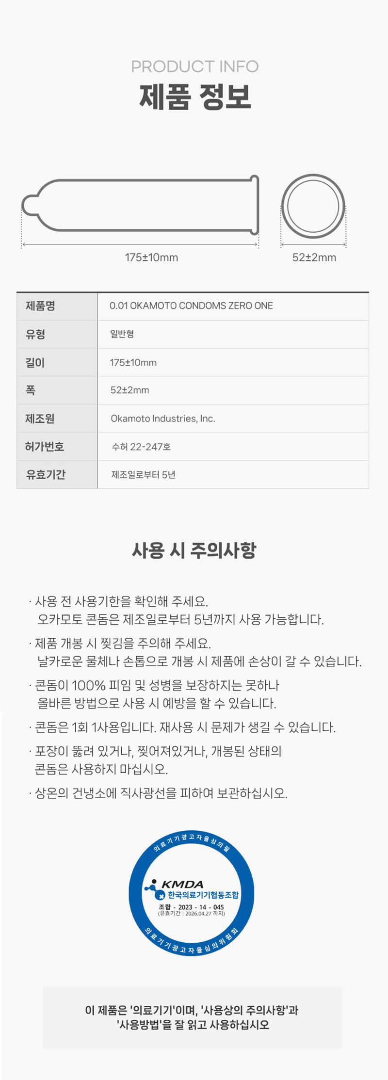 [초박형콘돔] 오카모토 001 제로원 2P(Okamoto 001 Zero One 2p)