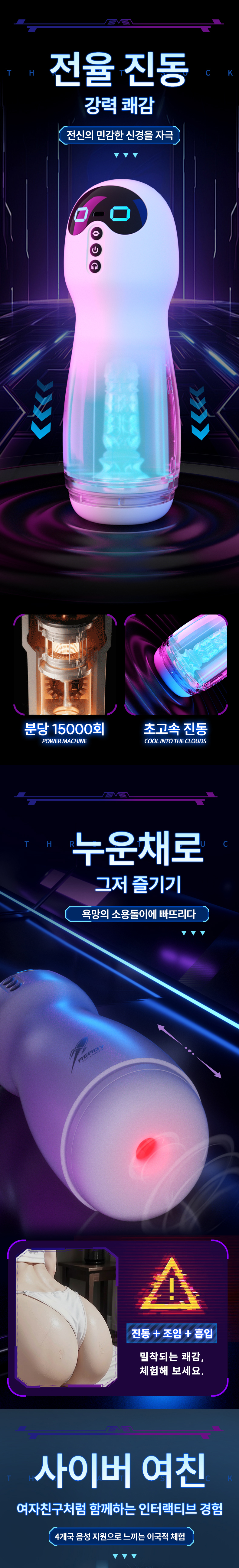 몰입감 있는 경험을 위해 진동, 흡입, 음성 기능이 모두 탑재되어 있으며,