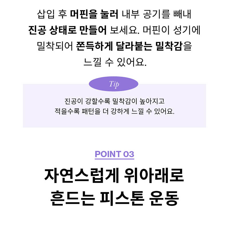 • 윤활젤이나 마사지젤을 꼭사용하세요. 용품 특성상 젤을 사용하지 않을시 중요부위에 손상이 갈 염려가 있습니다.