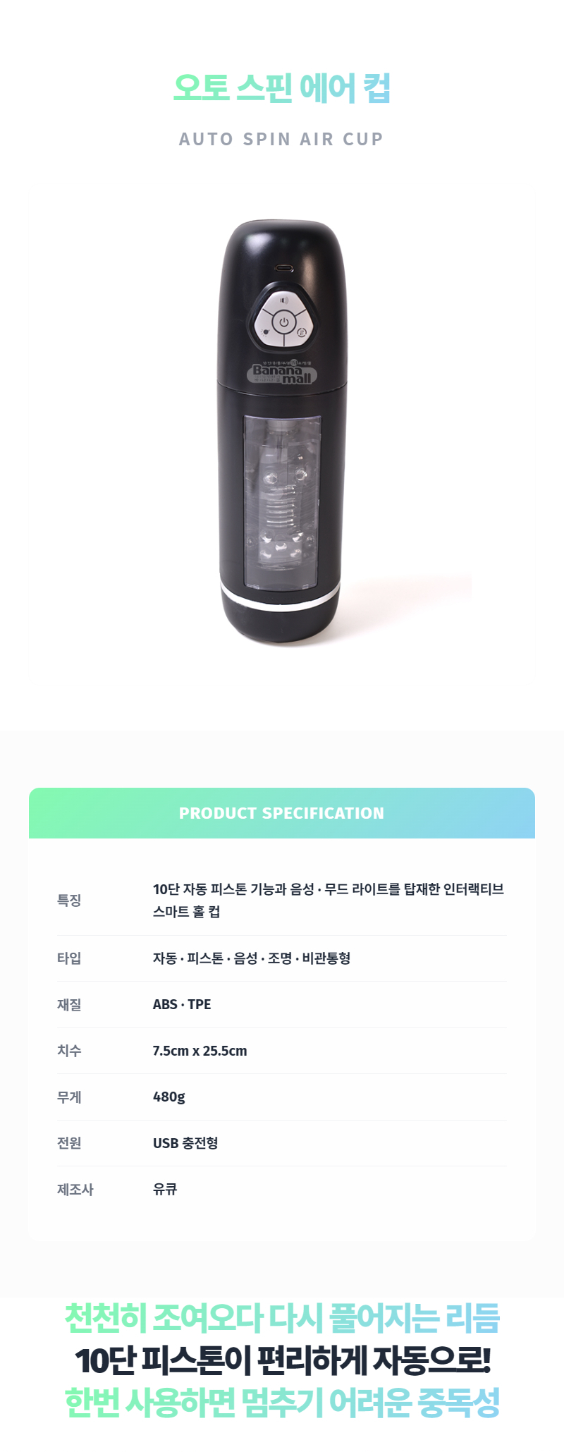 [10단 피스톤+음성+조명] 오토 스핀 에어 컵 (Auto Spin Air Cup) - 유큐(YQW-S13) (YOQ)