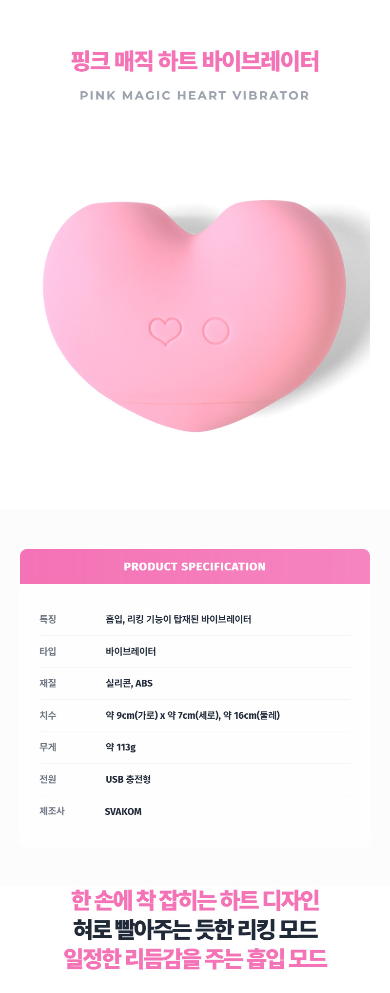 [10단 리킹+10단 흡입] 핑크 매직 하트 바이브레이터(Pink Magic Heart Vibrator) - 스바콤(HX158B/6959633103845) (DKS) (YY)