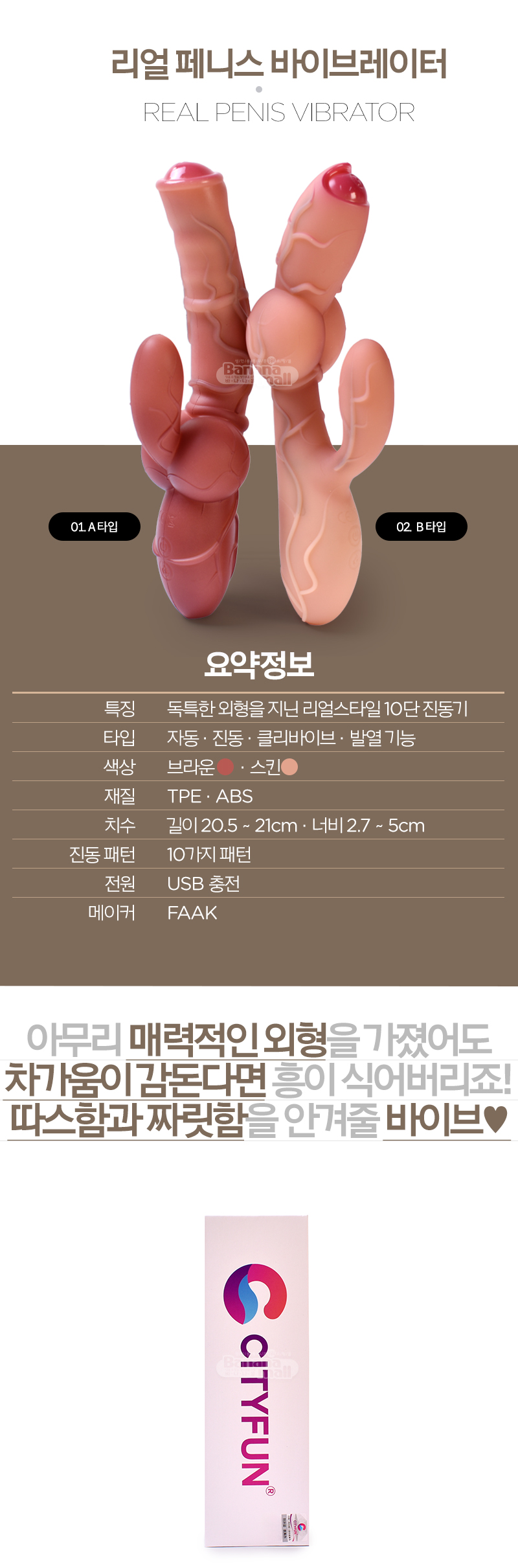 [10단 진동 + 발열] 리얼 페니스 바이브레이터(Real Penis Vibrator) - FAAK(CF-Y9024FZ) (FAAK)