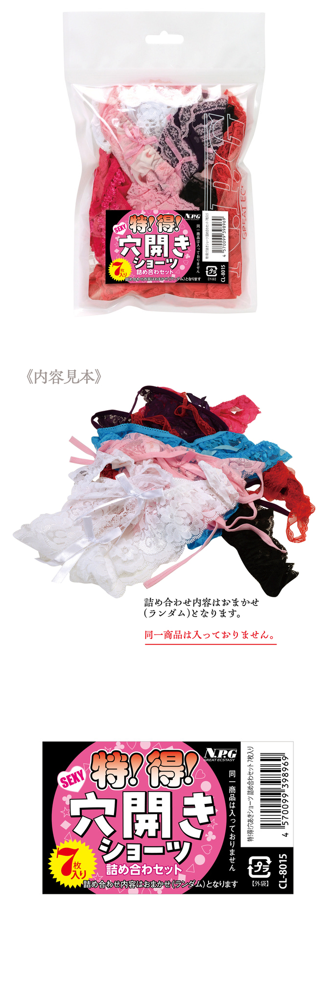 [일본 직수입] 특! 득! 탁 트인 팬티 모음 세트 7장(特!得!穴開きショーツ 詰め合わセット 7枚入り)