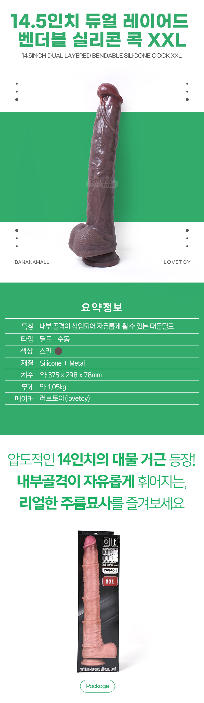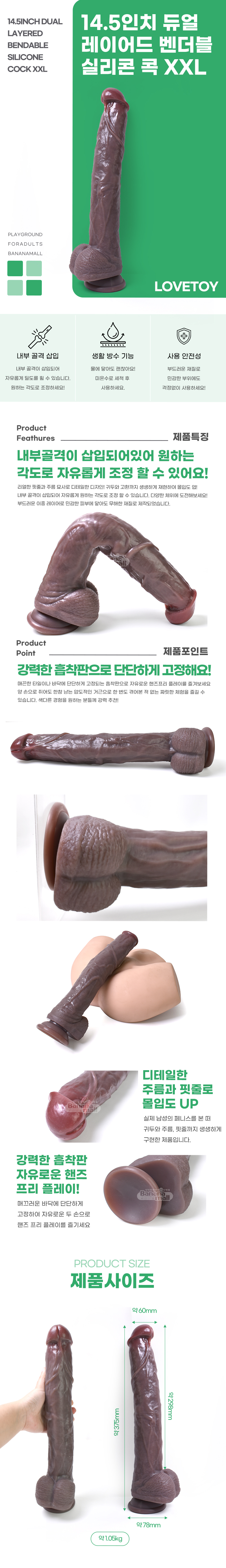 [대물흡착딜도] 14.5인치 듀얼 레이어드 벤더블 실리콘 콕 XXL(14.5inch Dual Layered Bendable Silicone Cock XXL) - 러브토이(LV411311/6942063402022) (LVT)