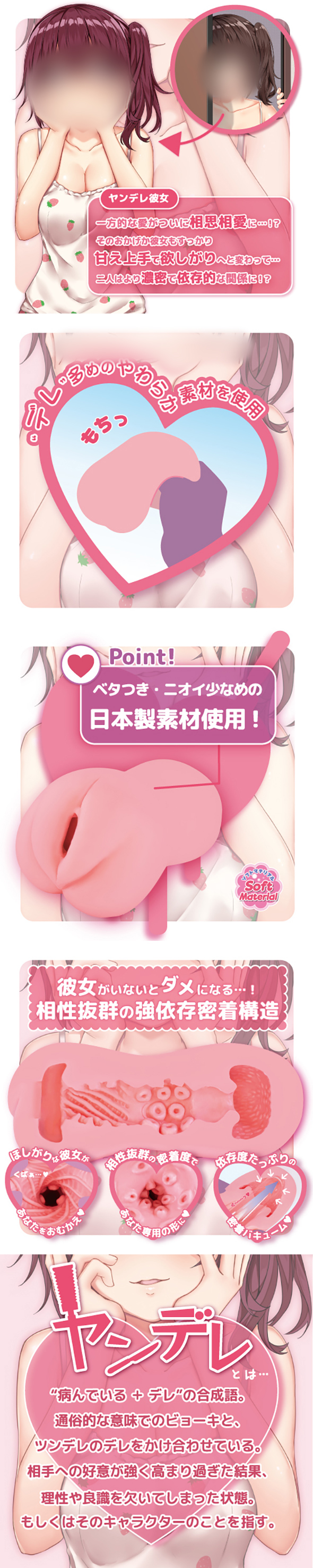 얀데레를 연상시키는 특별한 3개의 내부 구조로 짜릿한 진공 삽입감을 느끼게해줄 비관통 오나홀 제품, "얀데레 소프트 의존도 MAX 말랑 쫀득 버큠".