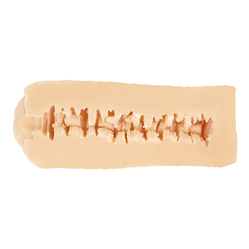 로션 누설 방지가 조금 깊은 위치에서 시작되어 상당히 거친 느낌의 주름을 중심으로 한 구조. 융기한 둔덕에는 미세한 주름 가공이, 그 옆에 존재하는 블럭에는 자잘한 자극 구조가 교대로 배치되어 손가락 끝으로 튕기는 것 같은 자극감이 연속됩니다.