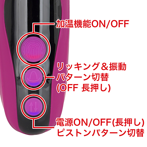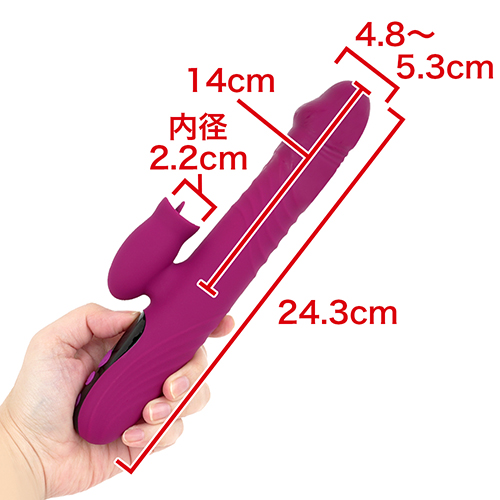 2점 자극으로 깊은 오르가즘을 체감할 수 있는 다기능 바이브입니다! 물리적으로 신축하는 피스톤과 진동으로 움직이는 메인 샤프트, 혀로 핥는 듯한 서브 바이브, 온열 기능으로 차갑지 않은 실제 삽입감을 즐길 수 있습니다.