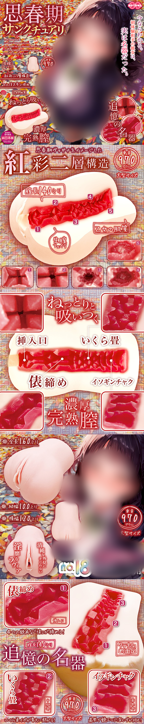 토르소 형태의 쉐이프와 디테일한 조형, 2중 구조의 인공 스킨을 포함한 소재감, 1kg에 육박하는 압도적인 중량, 그리고 확실한 절정을 부르는 명기라 불리는 구조를 다수 배치한 내부 구조 등, 전체적으로 완성도가 높은 비관통 홀 제품입니다.