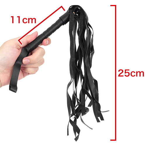 [장미 채찍] 전장 47cm 폭 2cm 중량 24g. 몇 겹의 줄을 묶은 디자인으로, 실내에서도 휘두를 수 있는 정도의 사이즈로 기분 좋은 아픈 쾌감을 즐길 수 있습니다!