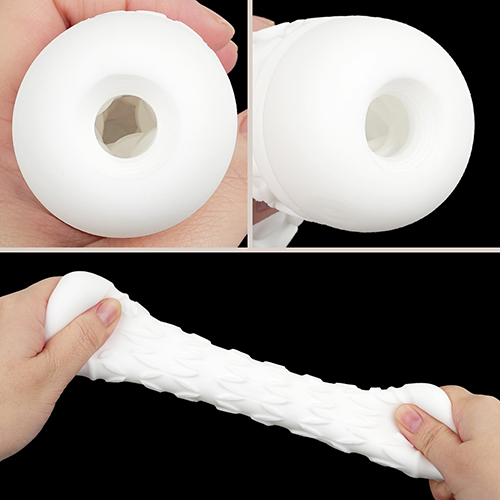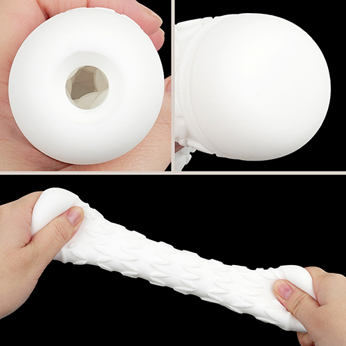 • 두께 5mm의 주름 링이 끝까지 연속되는 압도적 말림 감각이 귀두와 소대를 중점적으로 공략! 굽이치고, 얽히고, 튕기는 감각을 한 번의 스트로크로 체감하며 사정 욕구를 축적시킨다! 관통형과 비관통형 2가지 타입 중 선택 가능한 것도 포인트!