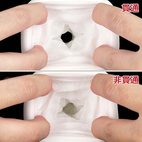 • 「관통」은 끝부분을 뚫고 나가는 개구부의 자극이 플레이를 가속시킵니다. 「비관통」은 가장 깊은 곳에 자리 잡은 거대한 원기둥이 끝부분을 말랑하게 자극합니다.