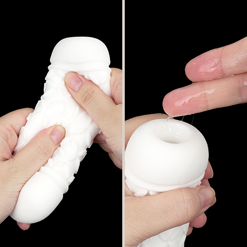 • 본체 내부에 페트병 뚜껑 1/2개 정도의 물을 넣고, 잘 주물러 물을 내부에 스며들게 합니다. 내부가 미끌거리게 되면 사용 가능합니다. 온수를 사용하면 따뜻한 삽입감을 즐길 수 있습니다.