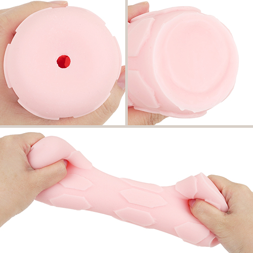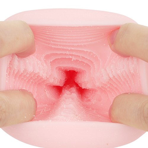 • 내부 구조는 전체적으로 홈이 파여 주름감이 강력합니다. 3단계로 좁아지는 홀 직경에 의해 서서히 타이트한 압박감이 증폭되며, 산 모양 주름 3개의 예리한 끝부분이 중심을 향해 있어 통과하는 성기를 긁어내듯 사후 자극을 줍니다.