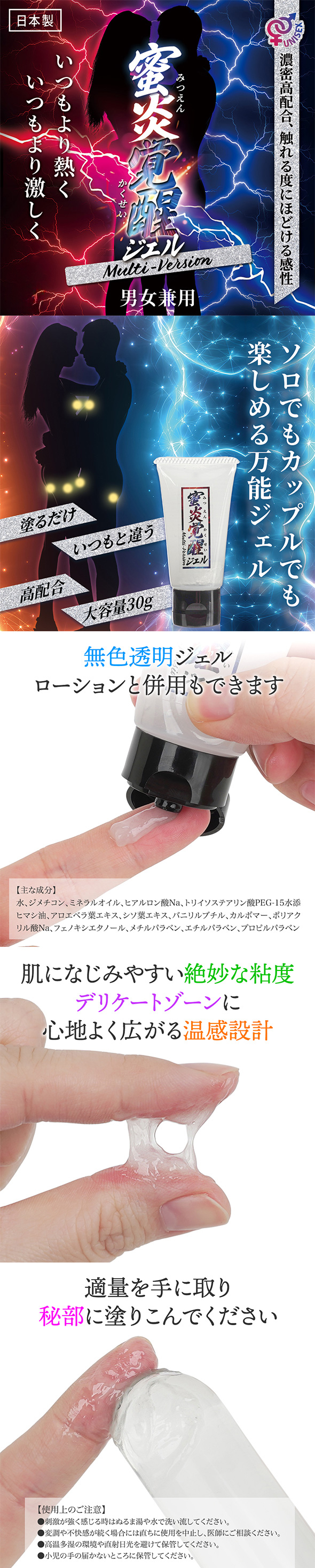 여성의 소중한 부위에 부드럽게 도포. 열기를 띤 욕정이 평소보다 대담한 플레이를 이끌어내어 두 사람의 시간을 농밀하게 서포트합니다.