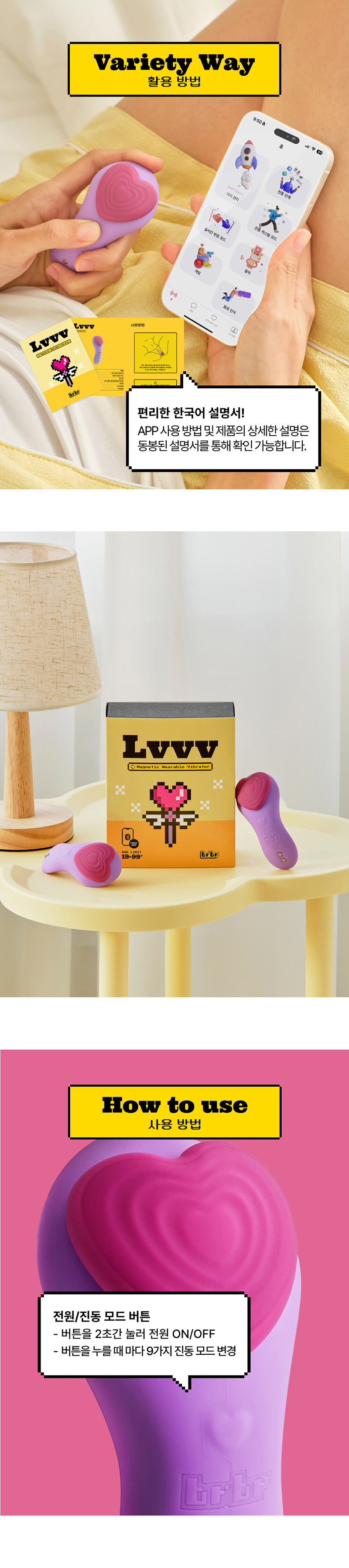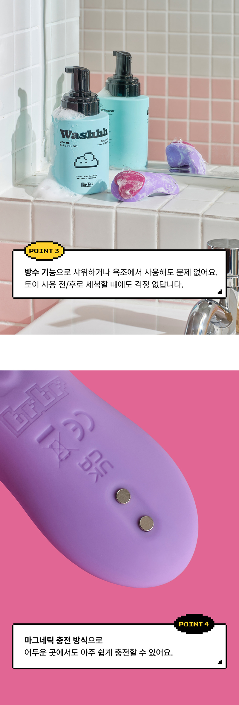 • 용품 사용시 꼭 콘돔을 사용하시길 바랍니다. 위생과 청결뿐아니라 제품의 수명에도 도움이 됩니다.