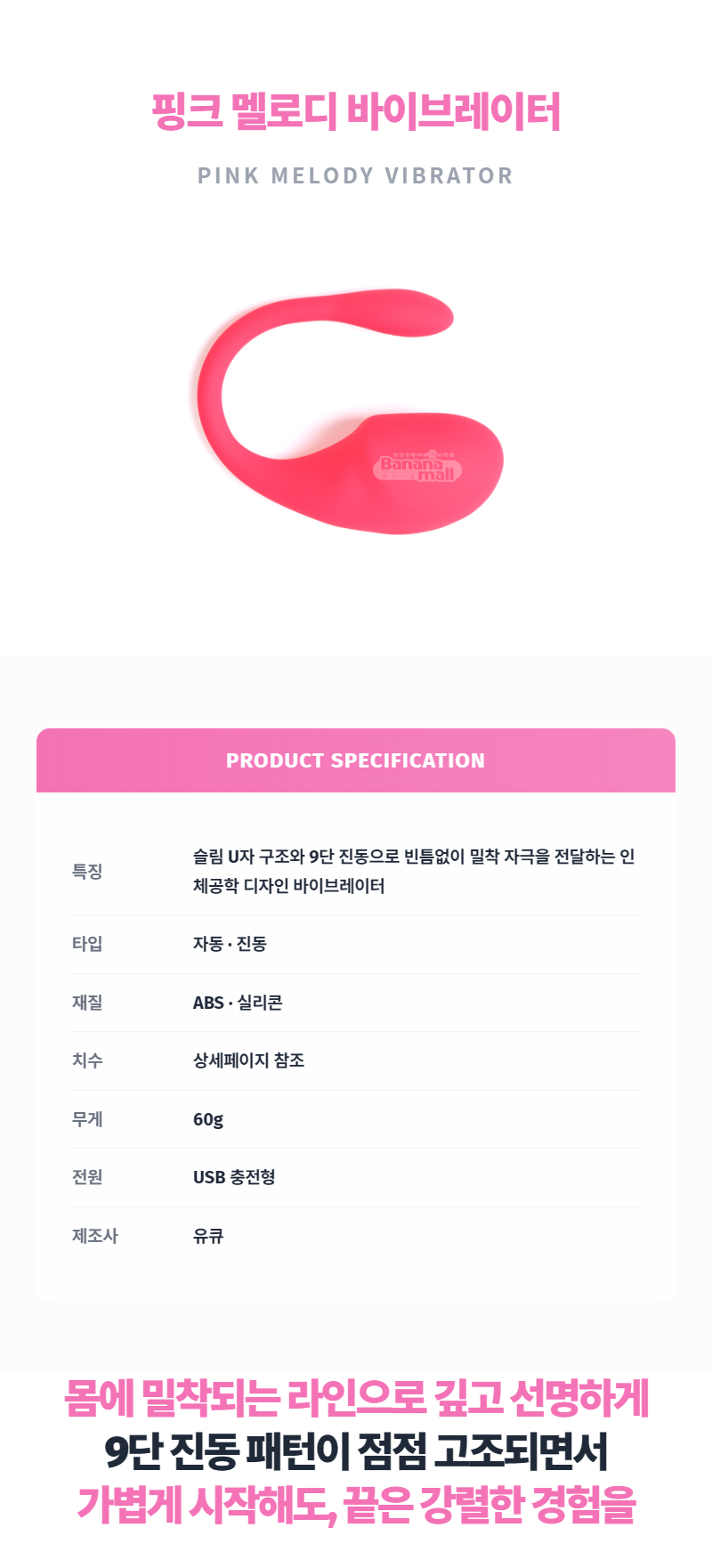 [9단 진동] 핑크 멜로디 바이브레이터 (Pink Melody Vibrator) - 유큐(YQM-021) (YOQ)