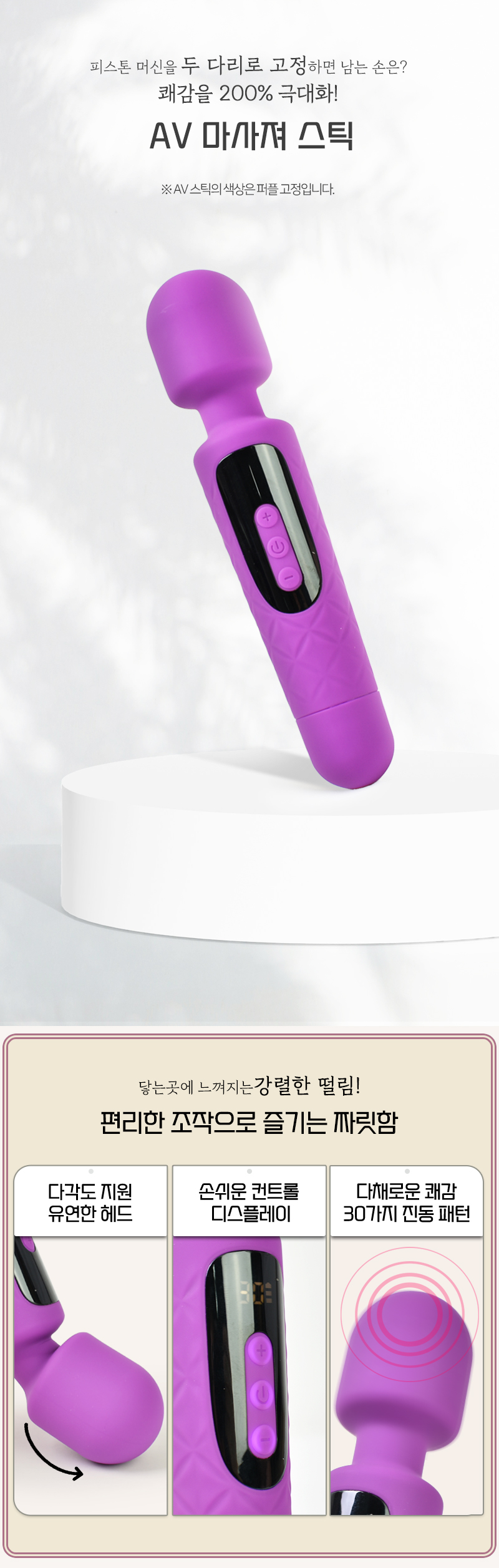 구성품에 포함되어 있는 AV 스틱을 사용하여 보다 다양한 자극과 오르가즘을 경험할 수 있습니다.