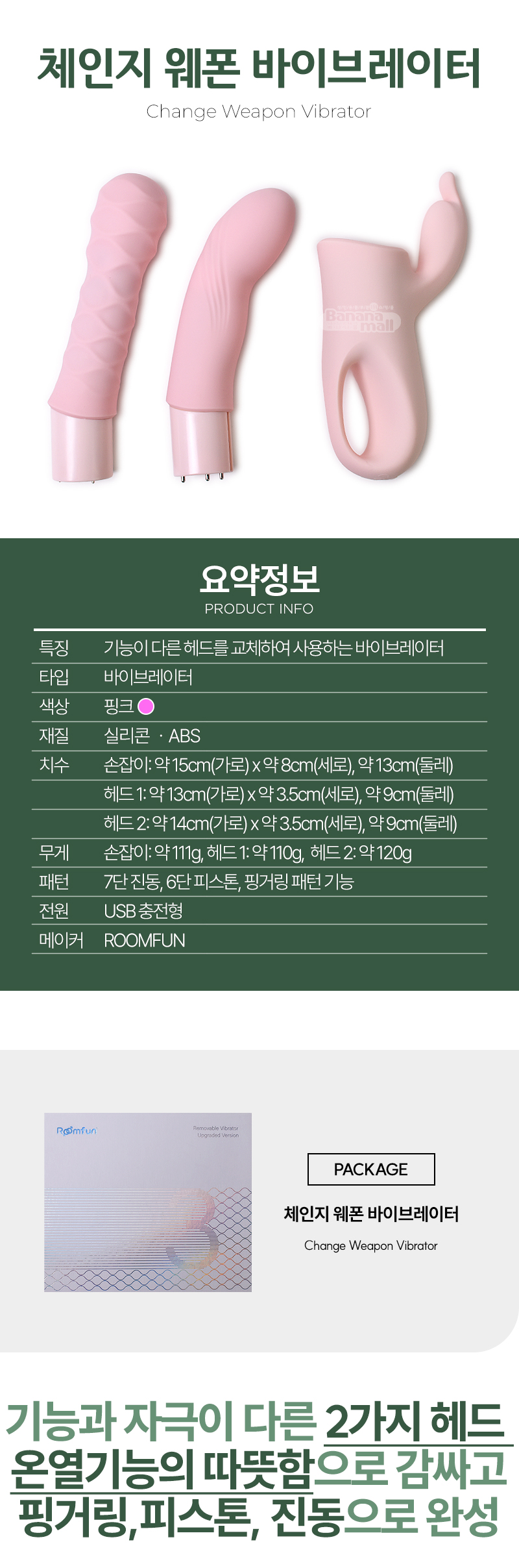 [진동+피스톤+온열+핑거링] 체인지 웨폰 바이브레이터(Change Weapon Vibrator) - 룸펀(QS-077) (RMP)