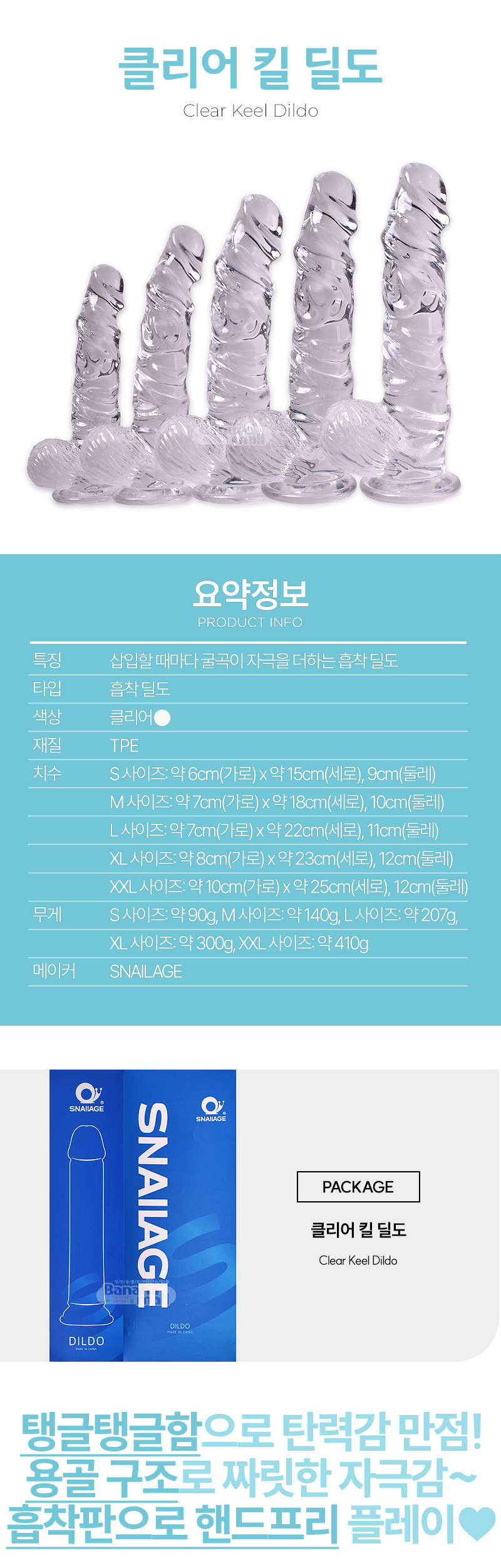 [흡착 딜도] 클리어 킬 딜도(Clear Keel Dildo) - 스네일(SNG_125) (SNA)