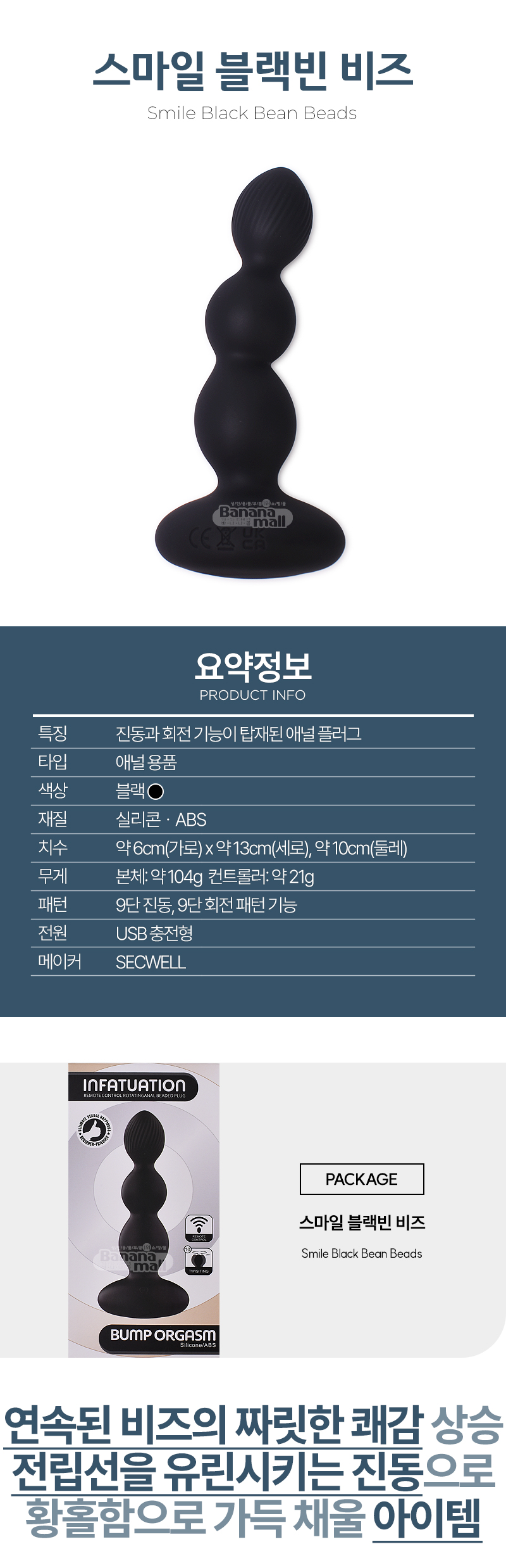 [9단 진동+9단 회전] 스마일 블랙빈 비즈(Smile Black Bean Beads) - SECWELL(SW25012) (SWL)(TJ)