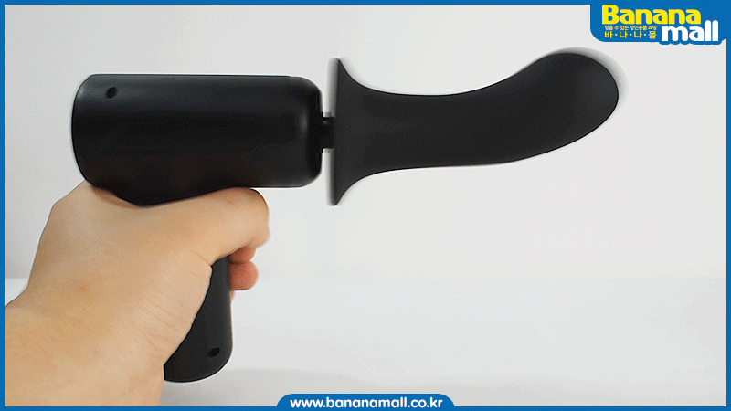 마사지건 형태의 인체공학적 디자인으로 손에 쥐고 편하게 사용할 수 있으며,