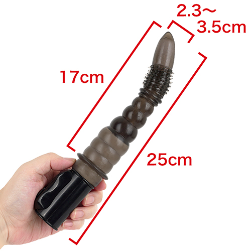 • 끝부분은 삽입하기 쉬운 총알 모양에 소형 바이브가 탑재되어 있습니다. 구형(球形)이 이어진 스틱 형태로 삽입감이 뛰어납니다.