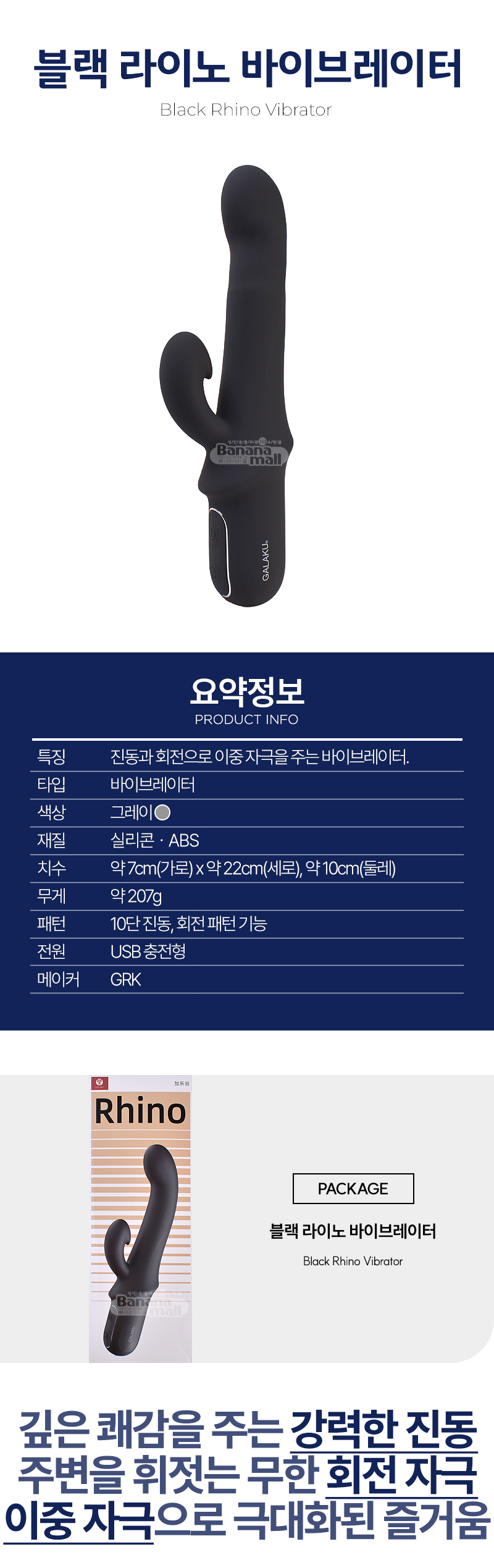 [10단 진동+10단 회전] 블랙 라이노 바이브레이터(Black Rhino Vibrator) - 가라쿠(GK2348-GY/6975488694055) (GRK)