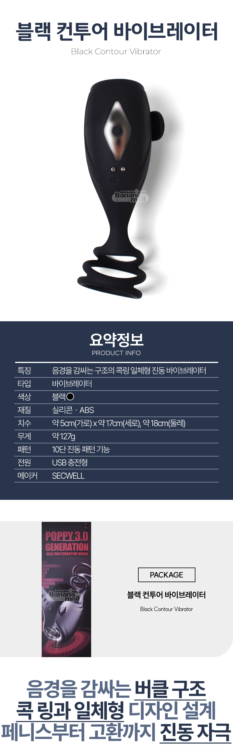 [10단 진동] 블랙 컨투어 바이브레이터(Black Contour Vibrator) - SECWELL(SW4003) (SWL)