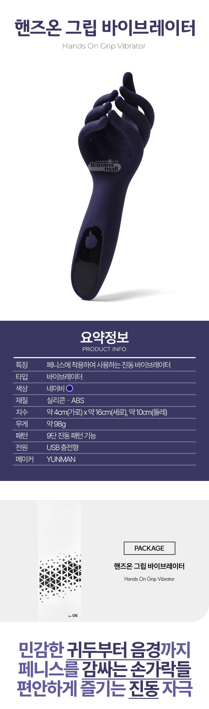 손가락이 음경을 부드럽게 감싸는 듯한 헤드 디자인으로,