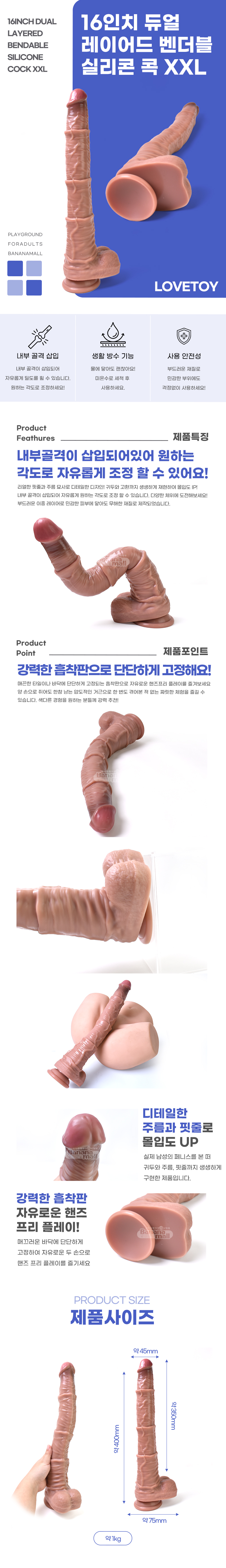 [대물흡착 딜도] 16인치 듀얼 레이어드 벤더블 실리콘 콕 XXL(16inch Dual Layered Bendable Silicone Cock XXL) - 러브토이(LV411302/6942063401957) (LVT)