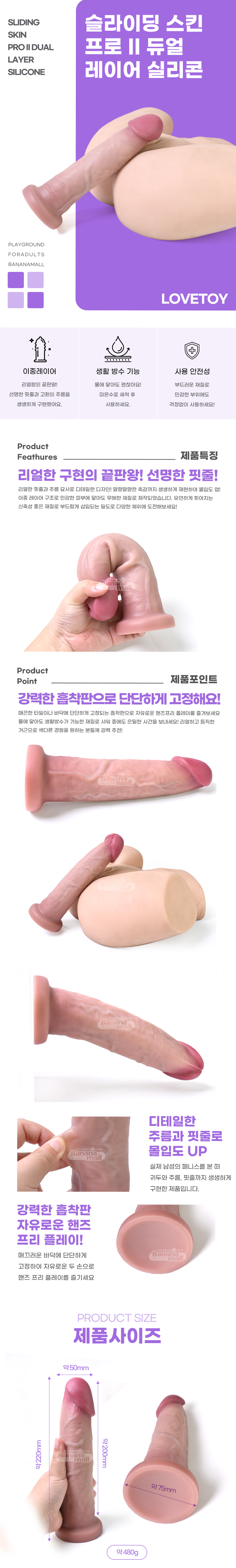 [흡착딜도] 슬라이딩 스킨 프로 II 듀얼 레이어 실리콘 (Sliding Skin Pro II Dual Layer Silicone) - 러브토이(LV417103/6942063402664) (LVT)
