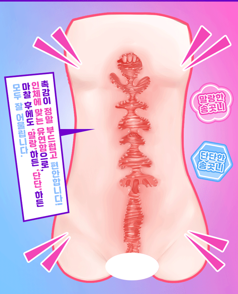 내부에 다양한 자극 돌기가 페니스를 자극하며 끝까지 삽입 시 민감해진 귀두를 콕콕 자극하는