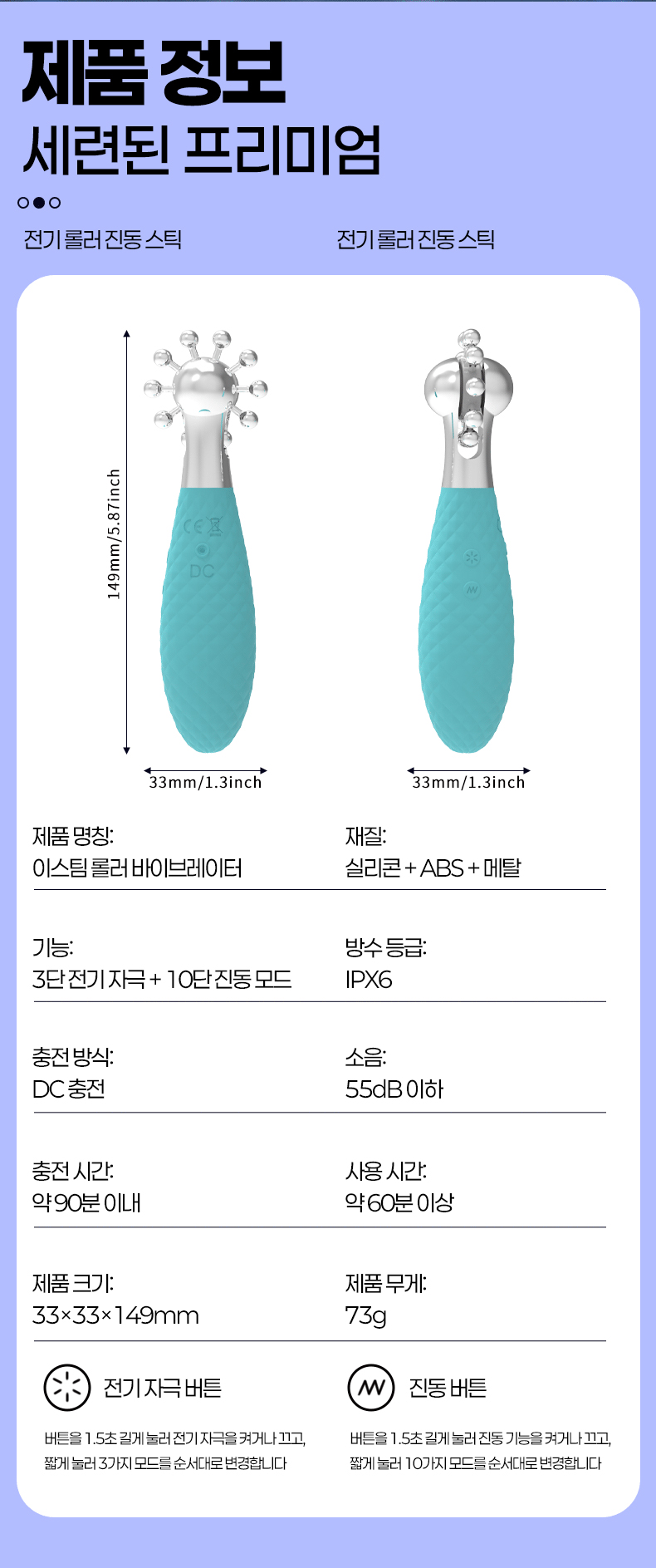 [10단 진동+3단 전기 자극] 이스팀 롤러 바이브레이터(E-stim Roller Vibrator) - DIF(DF1121)