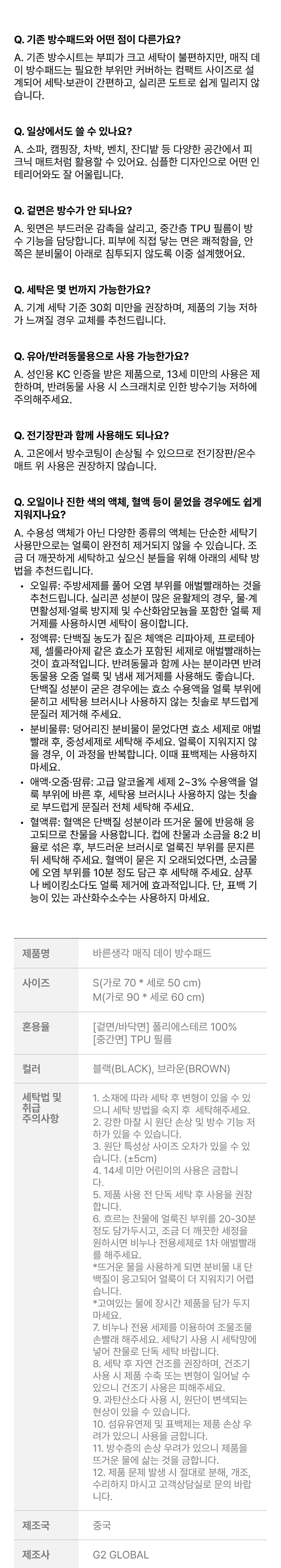 바른생각 매직 데이 방수패드 , 보조용품