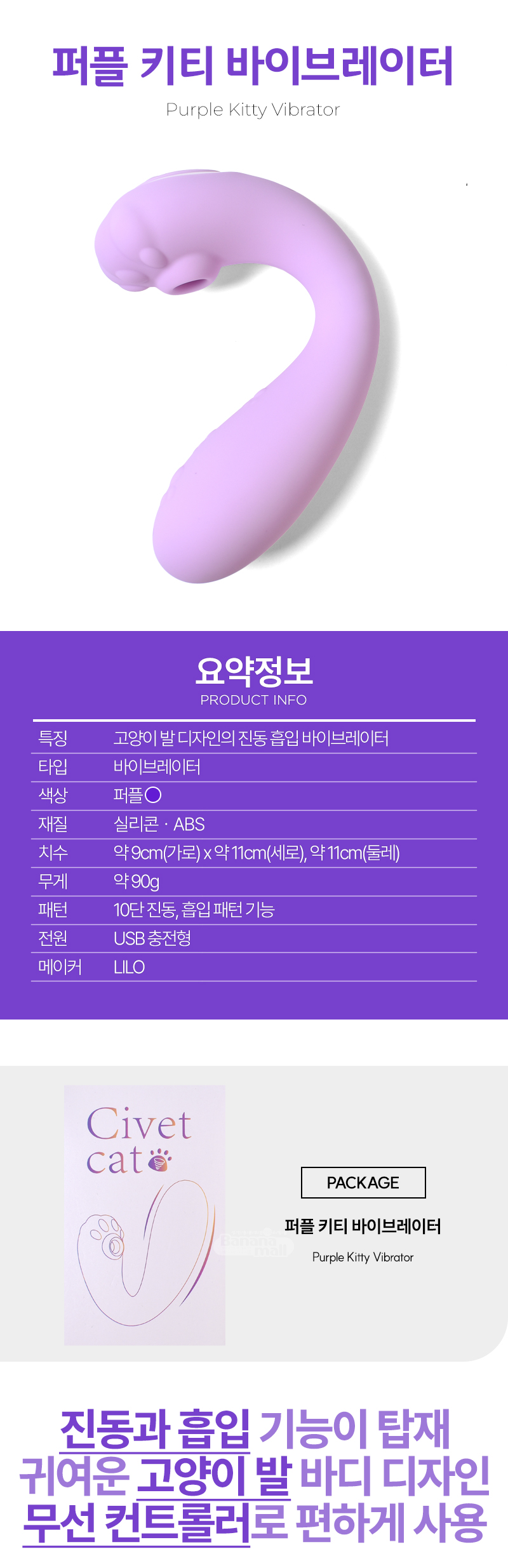 [10단 진동+10단 흡입] 퍼플 키티 바이브레이터(Purple Kitty Vibrator) - 리로(LL-25001-B) (LILO)(TJ)