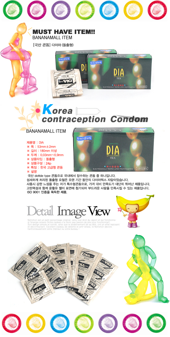 ♡ 표면에 세밀한 돌출형 요철이 새겨진 dotted type 제품!! ♡ 형태는 단순하지만 강한 자극을 느낄 수 있는 제품입 니다. ♡ 고탄력성과 함께 윤활유가 표면에 처리되어 ♡ 부드럽고 강한 사랑을 만족시킬 수 있는 제품입니다. ♡ 표면의 윤활유는 알레르기방지, 정자억제, 성감을 좋게 합니다.
