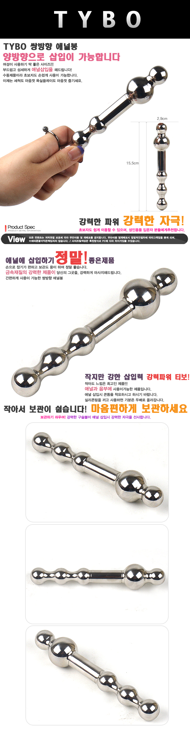 ♡ 보관하기 쉬운 티보 쌍방향 애널봉 ♡ 애널 삽입용 디자인으로 강력한 느낌을 드립니다. ♡ 은밀하게 즐길 수 있는 티보 쌍방향 애널봉 ♡ 수동제품으로 손쉽게 사용이 가능합니다. ♡ 보관하기 쉬우며, 걱정하실 필요가 없습니다. ♡ 내구성이 좋아 오래 사용이 가능한 제품입니다.