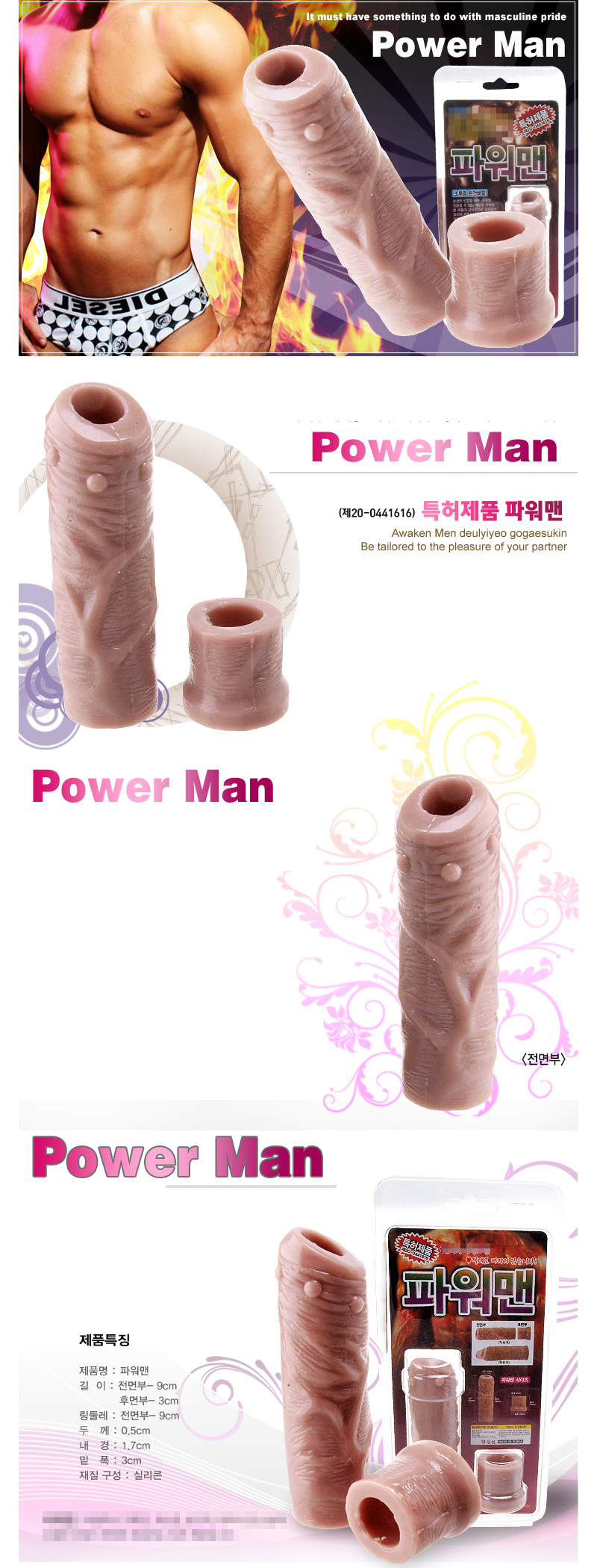 ♡ 남성 확대 + 멀티오르가즘 파워맨 ♡ 최고급 실리콘을 사용하여 피부에 잘맞습니다. ♡ 제품에 굴곡이 있어 또다른 느낌을 부여합니다. ♡ 초보자도 손쉽게 사용이 가능한 제품 입니다. ♡ 성기 사이즈 상관없이 모든 남성분이 사용이 가능합니다. ♡ 내구성이 좋아 오래 사용이 가능한 제품입니다.