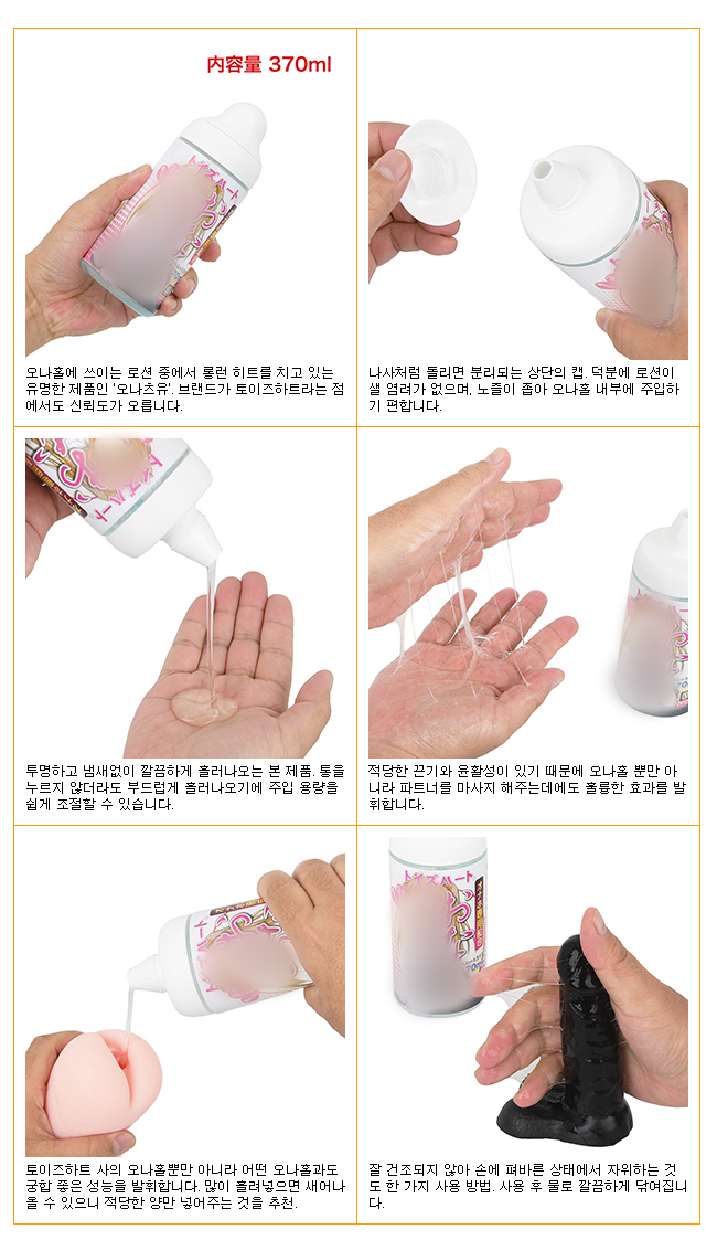 [제니컴퍼니] 리얼로다 핸드잡 시리즈 - 제니 H001(Real Roda Jenny H001) [NR]실제 본떠서 만든 제품이라길래 기대감이 좀 있었는데개인적으로 명기시리즈 보단 이하 묵직함이 없어서 아쉽기도 하고 명기시리즈 써본사람은 비추 입문자용----------[일본 직수입] 오나츠유 370ml(おなつゆ) - 토이즈하트 (TH)뭐랄까 소중이를 좀 더 소중하게 보호해주는 느낌이랄까하드한걸 좋아한다면 이 제품을 쓰지 않는걸 추천----------[전신 마사지 겸용] 아봄 밀크 로션 450ml(Abom Milk Lotion) [NR]말그대로 로션같아서 편안하게 쓰기좋음.용량도 많고 개인적으로 추천하는 제품