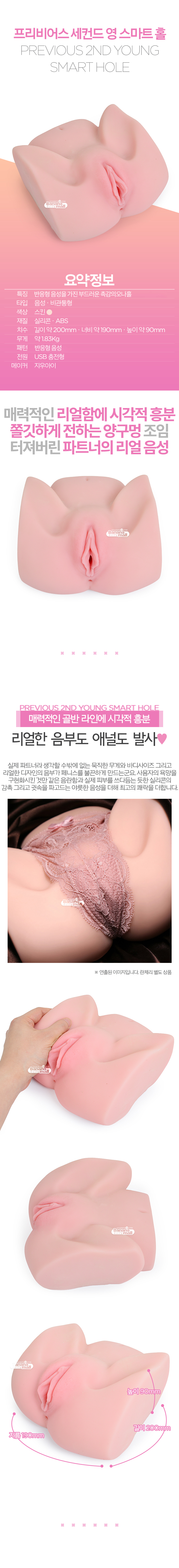 실제 파트너라 생각할 수밖에 없는 묵직한 무게와 바디사이즈 그리고 리얼한 디자인의 음부가 페니스를 불끈하게 만드는군요. 사용자의 욕망을 구현화시킨 것만 같은 음란함과 실제 피부를 쓰다듬는 듯한 실리콘의 감촉 그리고 귓속을 파고드는 야릇한 음성을 더해 최고의 쾌락을 더합니다.
